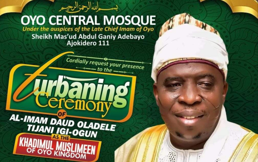 Imaam Daud Oladele Tijani Igi Ogun will be turbaned as the Khadimul Muslimeen of the entire Oyo kingdom, the title which is arguably the first in the history of whole Oyo.