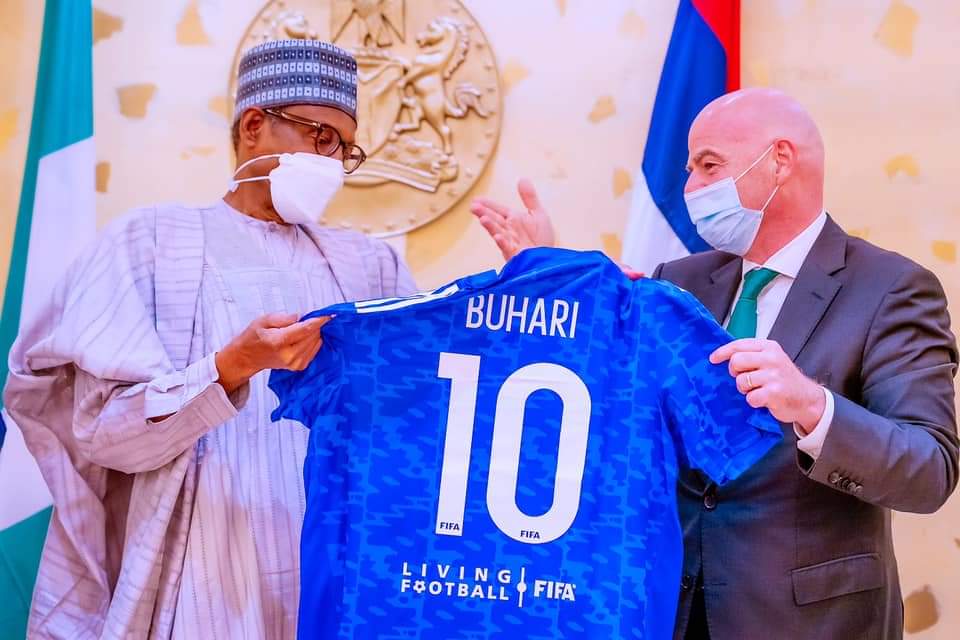 The FIFA president thanked President Buhari for supporting the development of the game, appealing to him to help FIFA amplify the message of football as a uniting force.